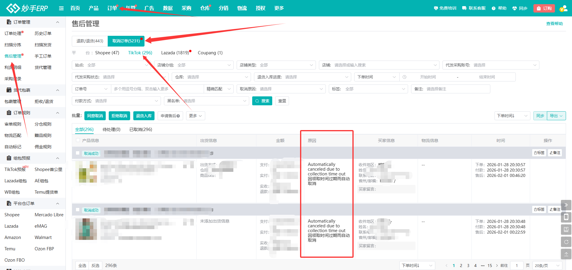 A:可以,在订单-售后管理-取消订单-选择TikTok,可以查看原因