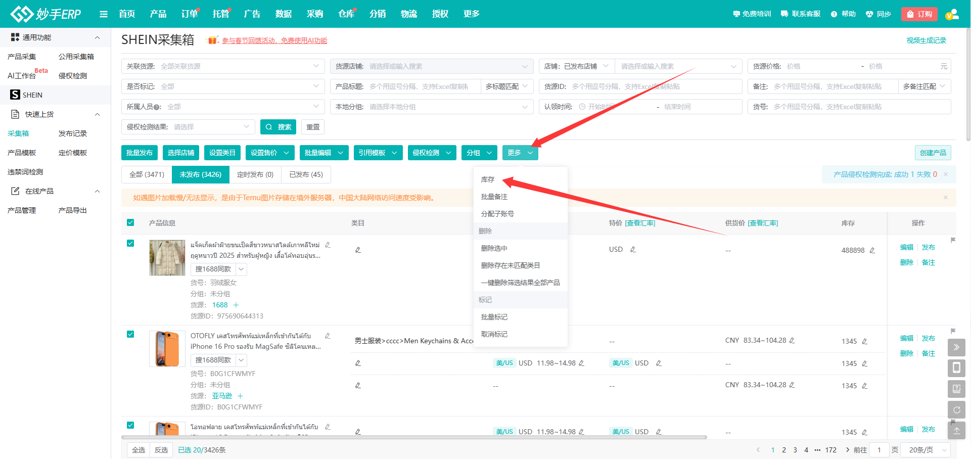 Q:Shein/Shein半托管采集箱如何批量编辑库存