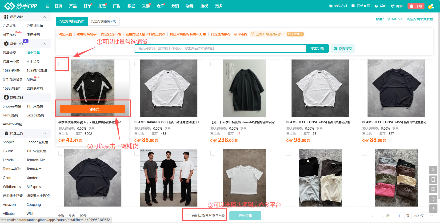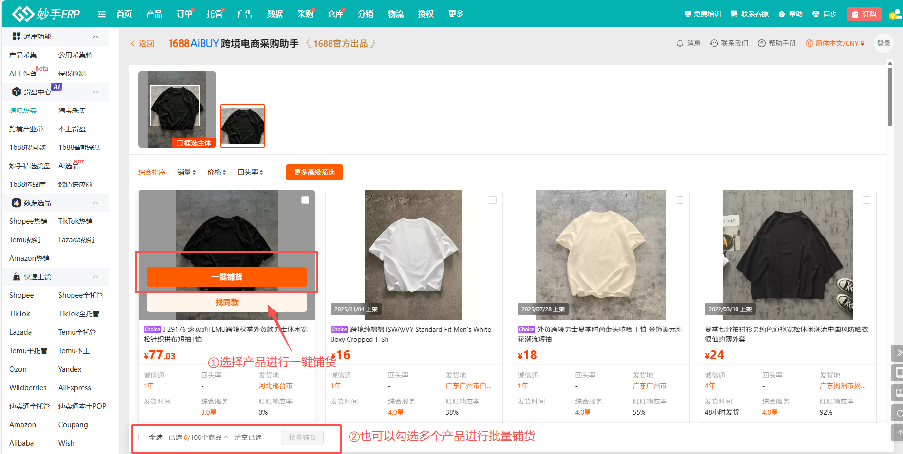 点击一键铺货,也可以批量勾选,进行铺货