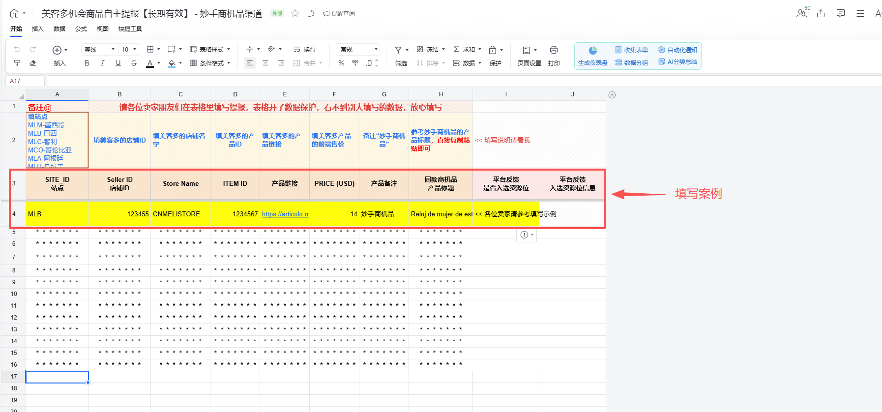按照模板案例,填入对应信息,该信息有数据保护,他人无法查看