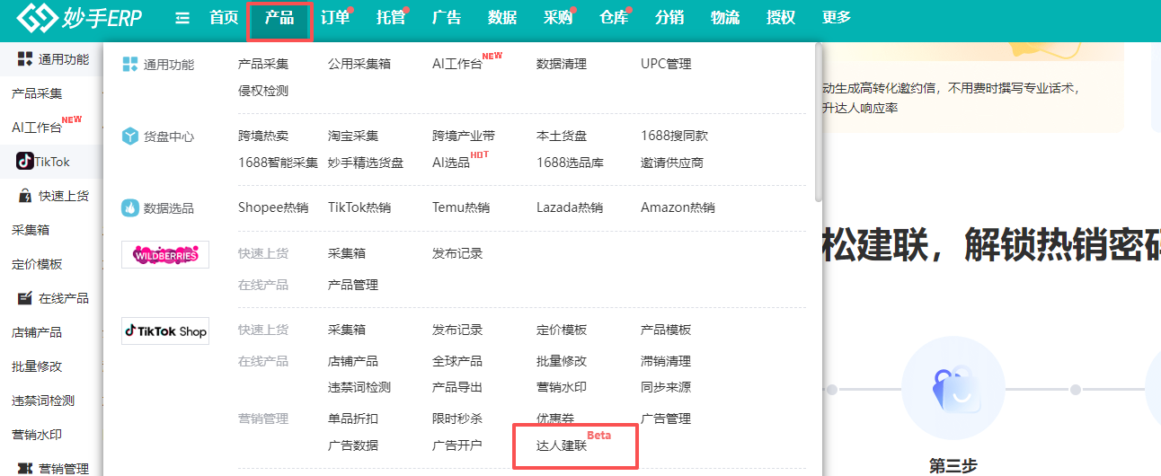 3、使用妙手ERP达人建联功能,AI智能邀约达人,无需自己撰写专业话术,并且智能归类产品,方便用户精准找到匹配度高的达人,新手也能快速上手,大大减少邀约难度