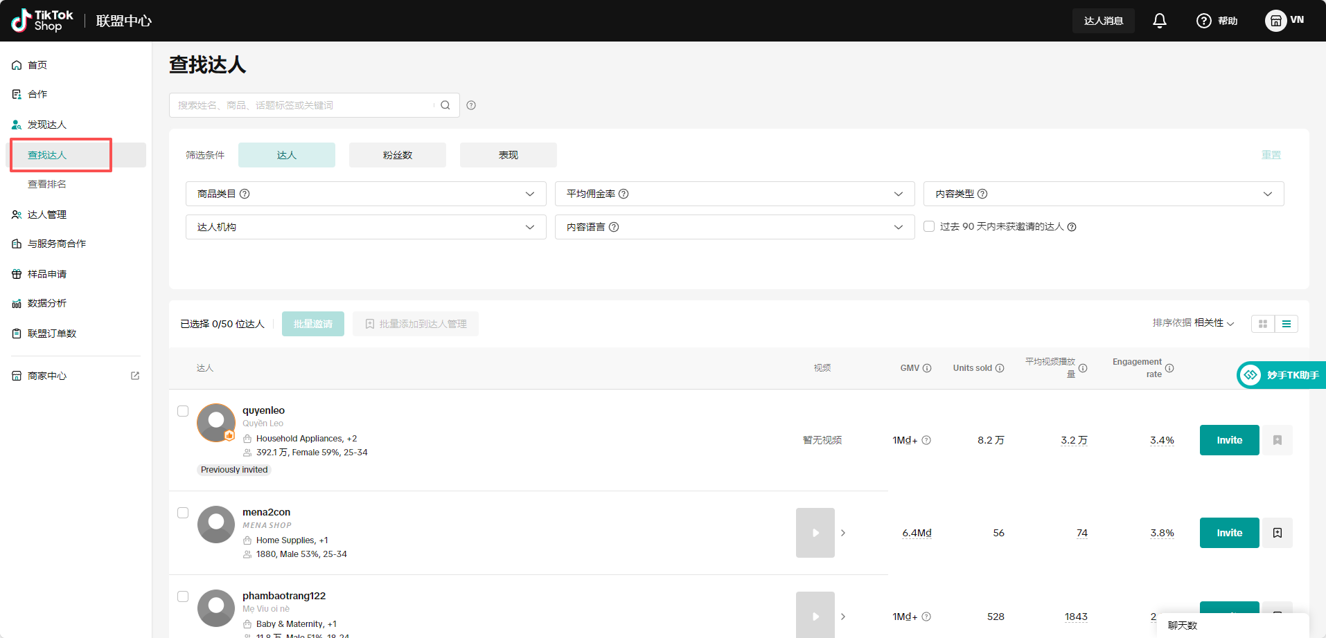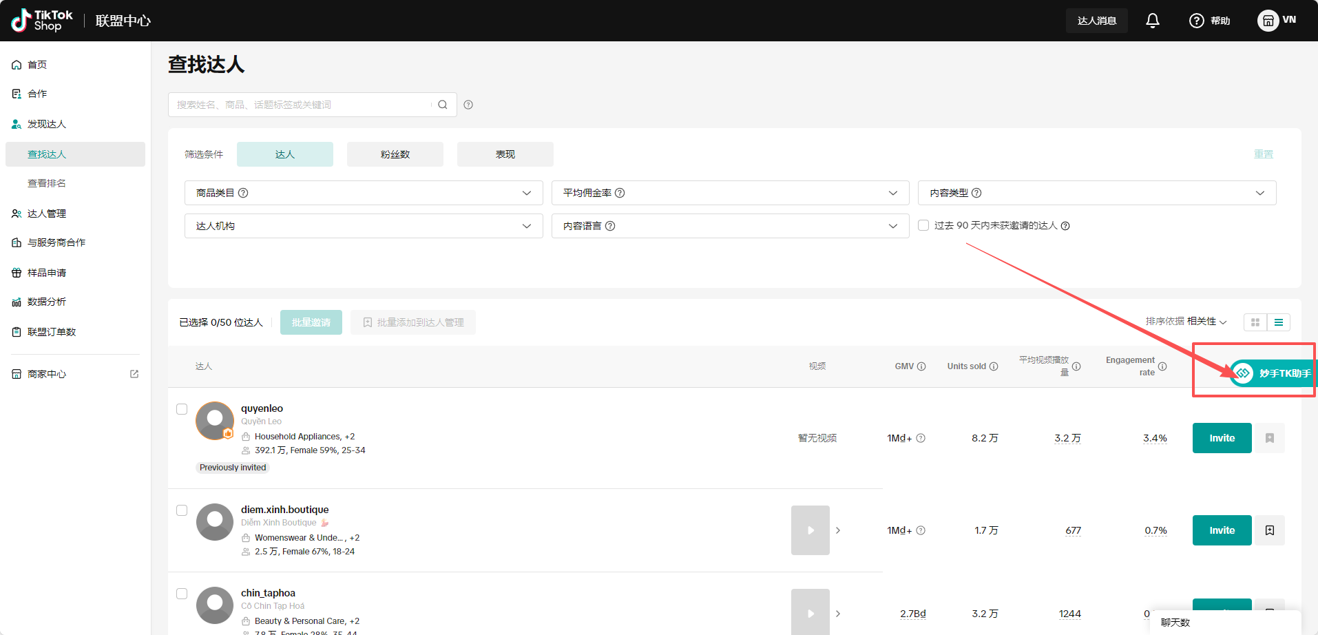 (1)可直接打开TK卖家后台,进入发现达人=>查找达人