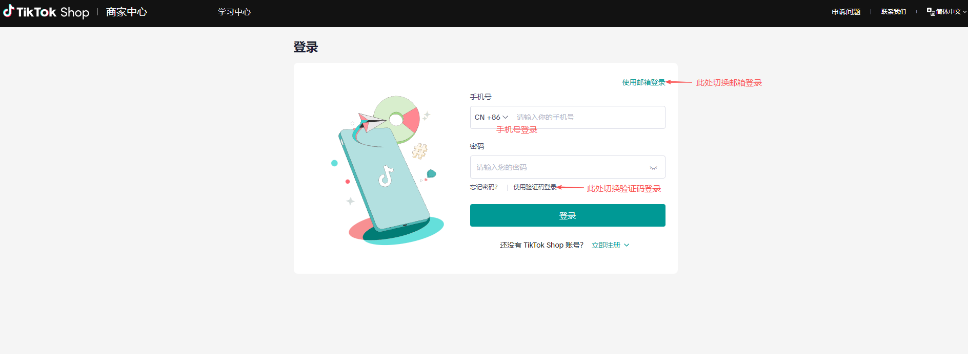 3、继续跳转到下一个界面,手机号输入密码或验证码登录,也支持切换邮箱登录