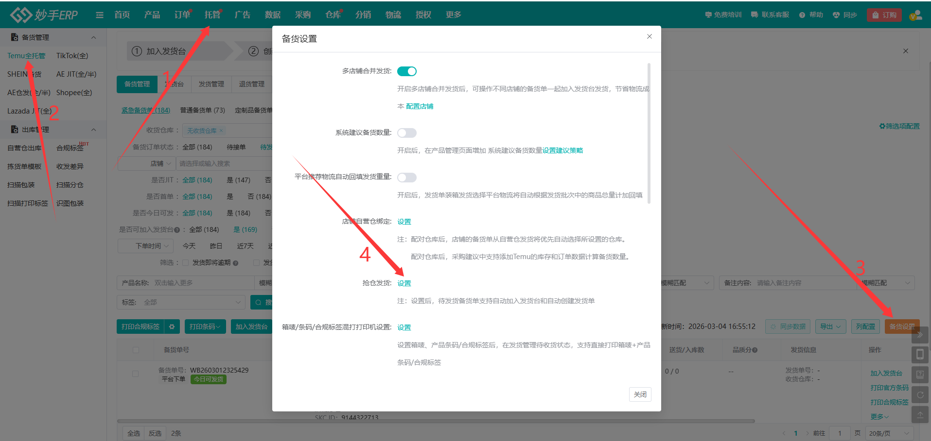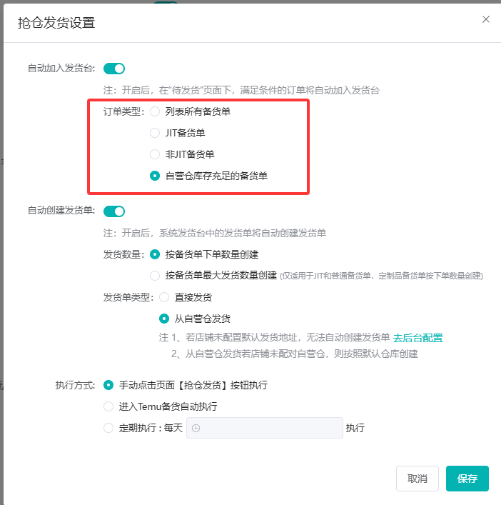 Q:Temu全托管可以设置指定类型备货单进行抢发货台吗