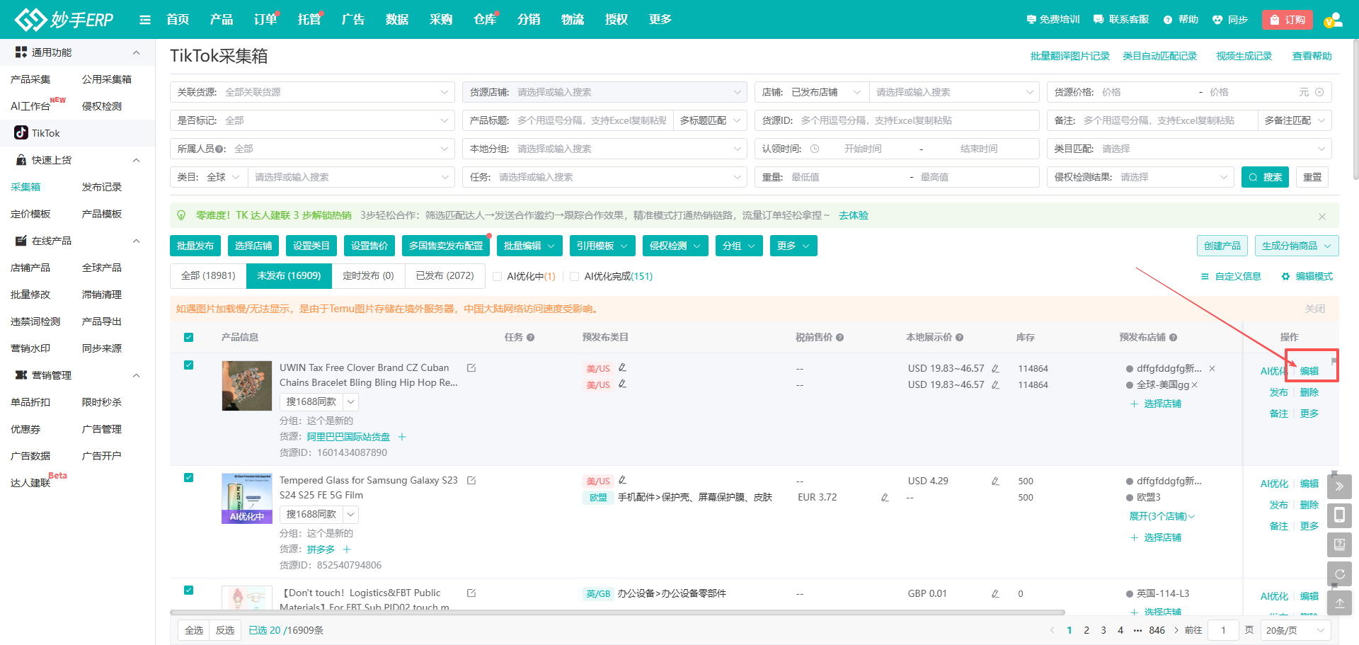 2、如需了解TikTok产品采集并发布的完整流程,可跳转查看:TikTok跨境店新链路发品全流程、TikTok跨境店、本土店刊登教程