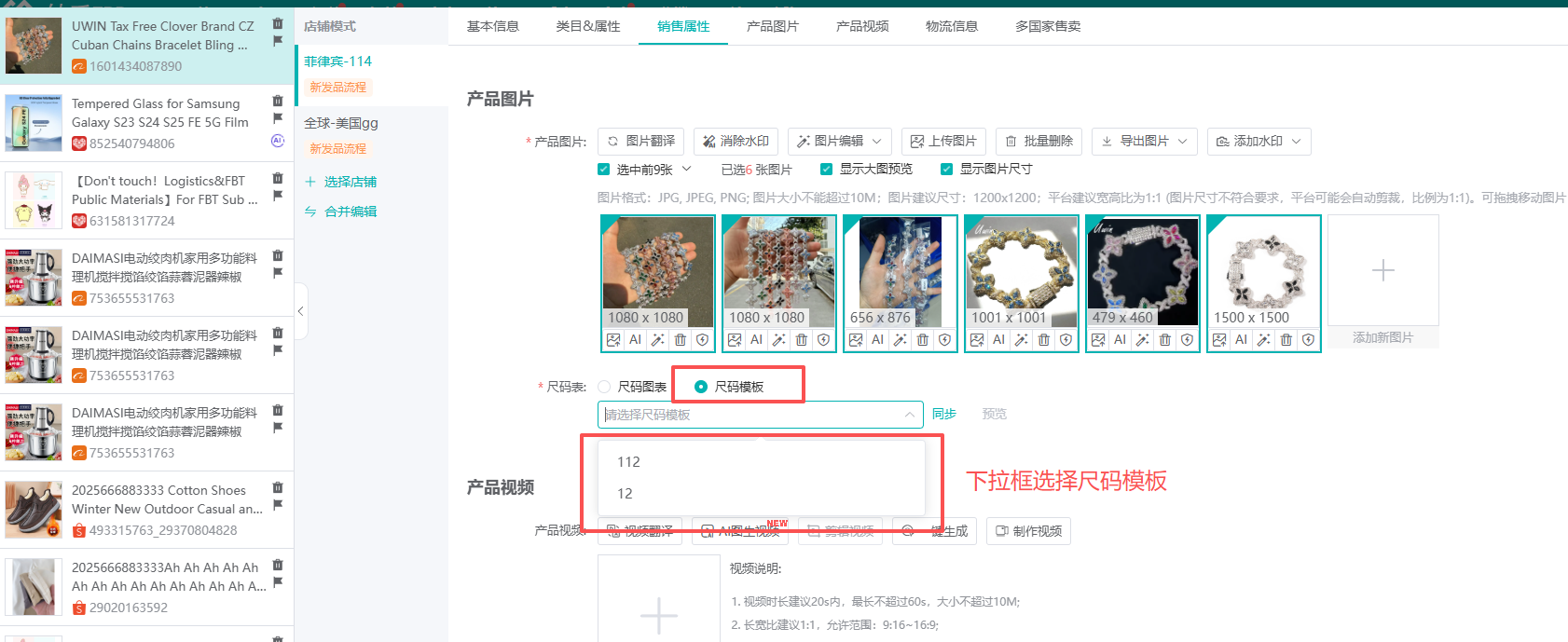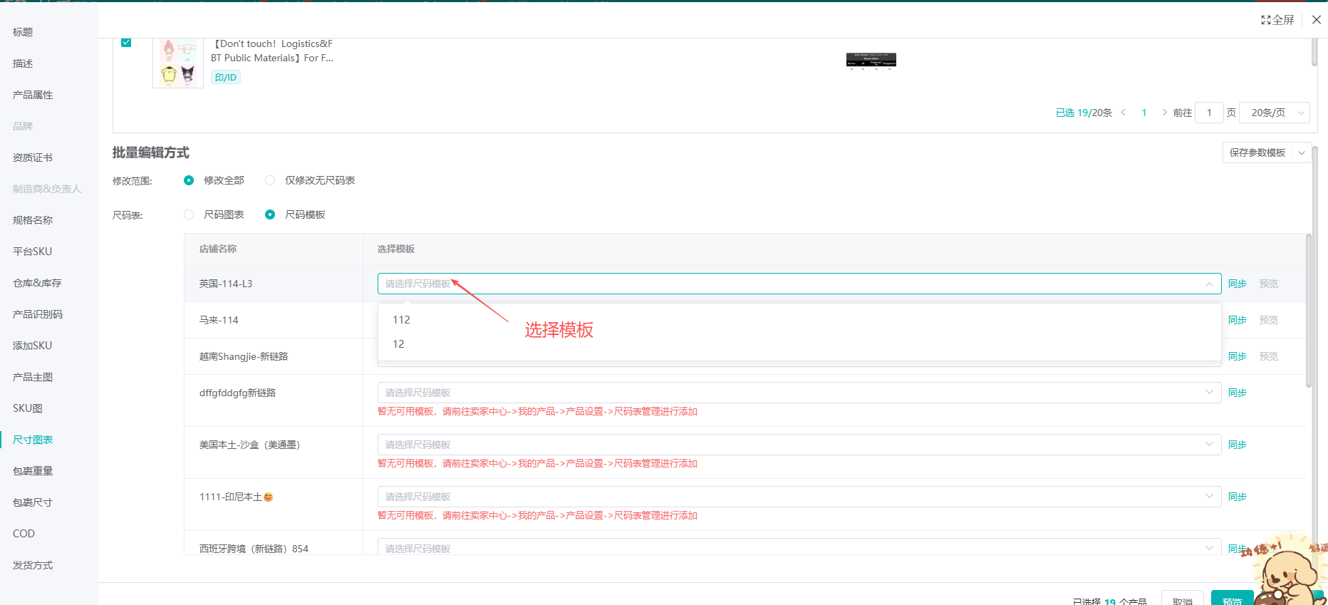 如果是选择尺码模板,系统会同步卖家中心的模板,