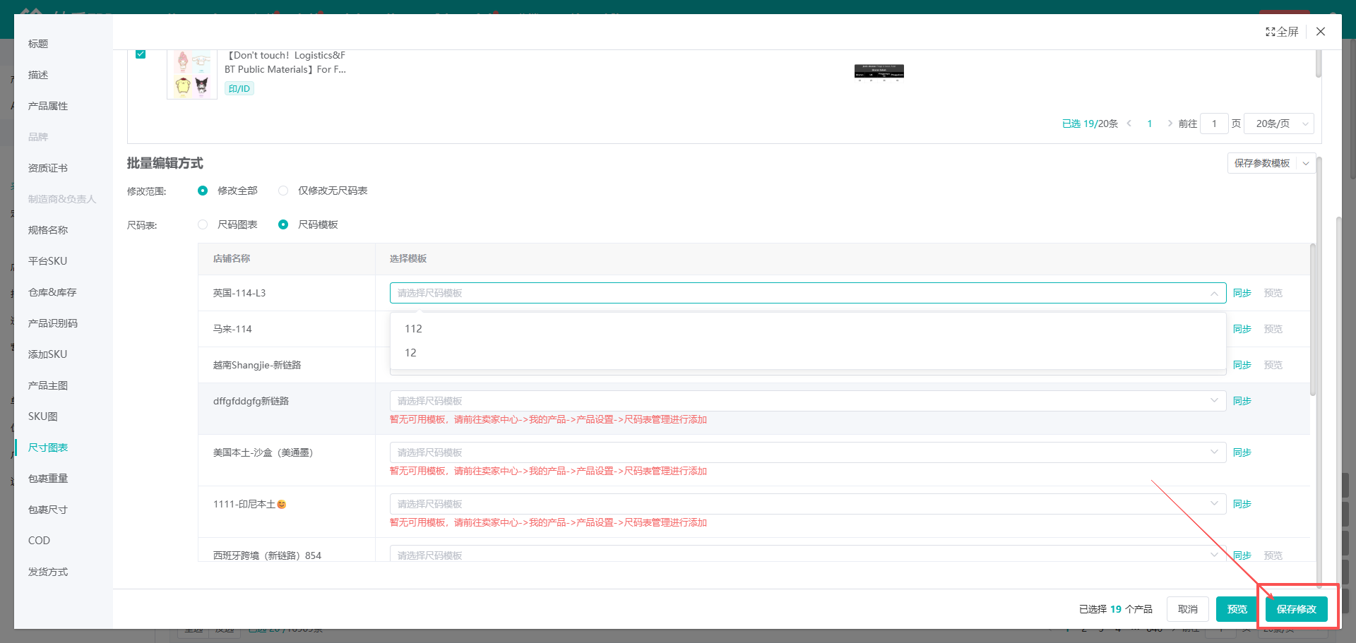 (4)确认无误后,点击【保存修改】,即可批量设置尺码表