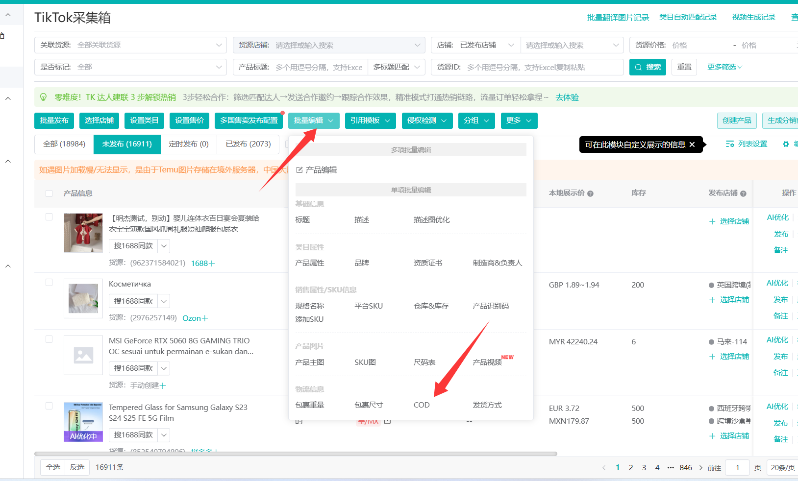 妙手产品-TikTok-批量修改-COD(货到付款)