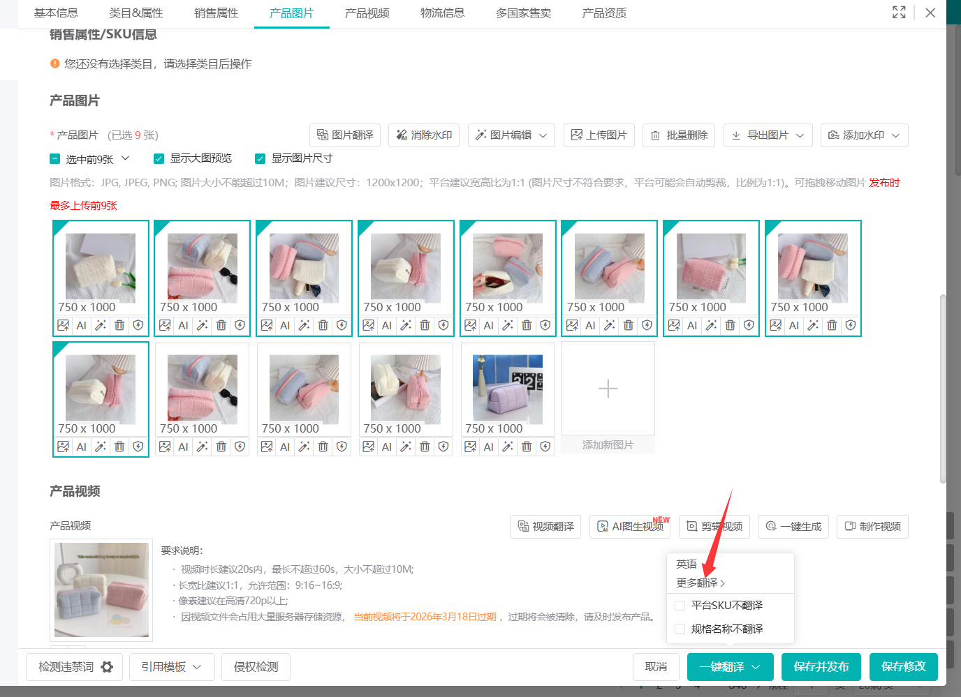 发布前在编辑产品页面右下角一键翻译未泰语,或者发布页面选择自动翻译泰语