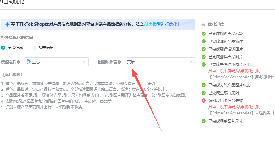 AI自动优化中的图翻原语言修改下,原语言选择错误导致不会翻译