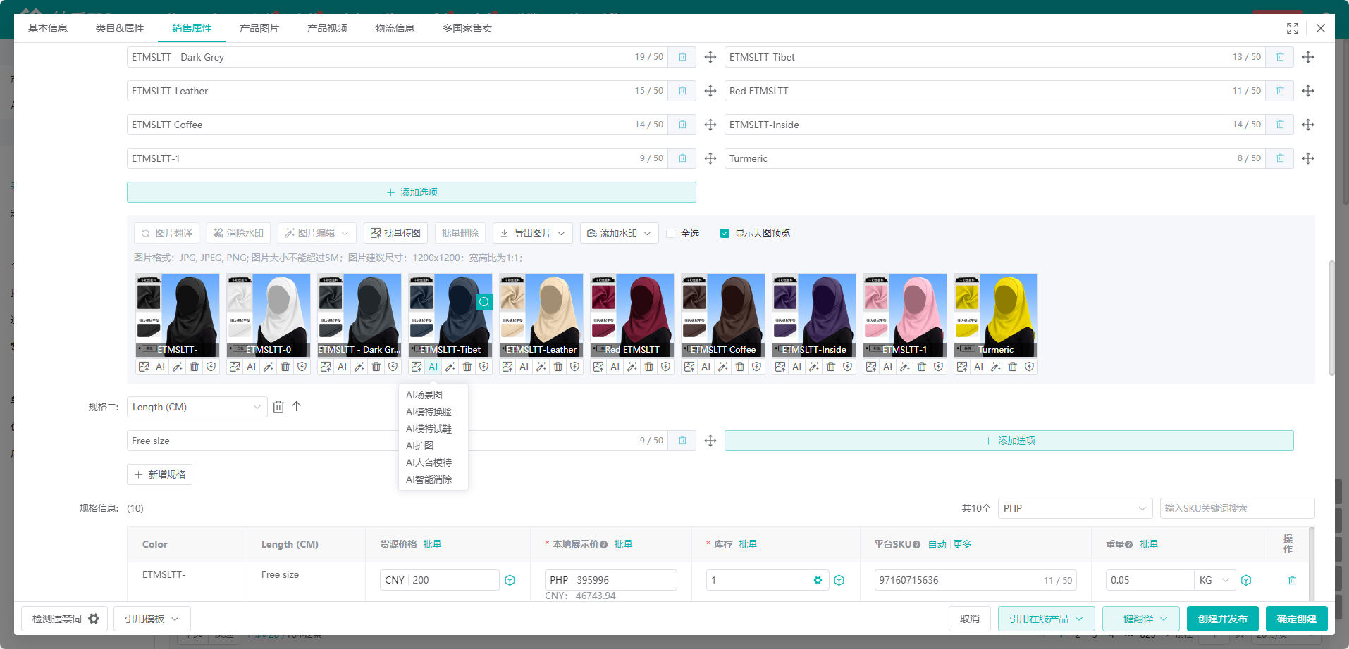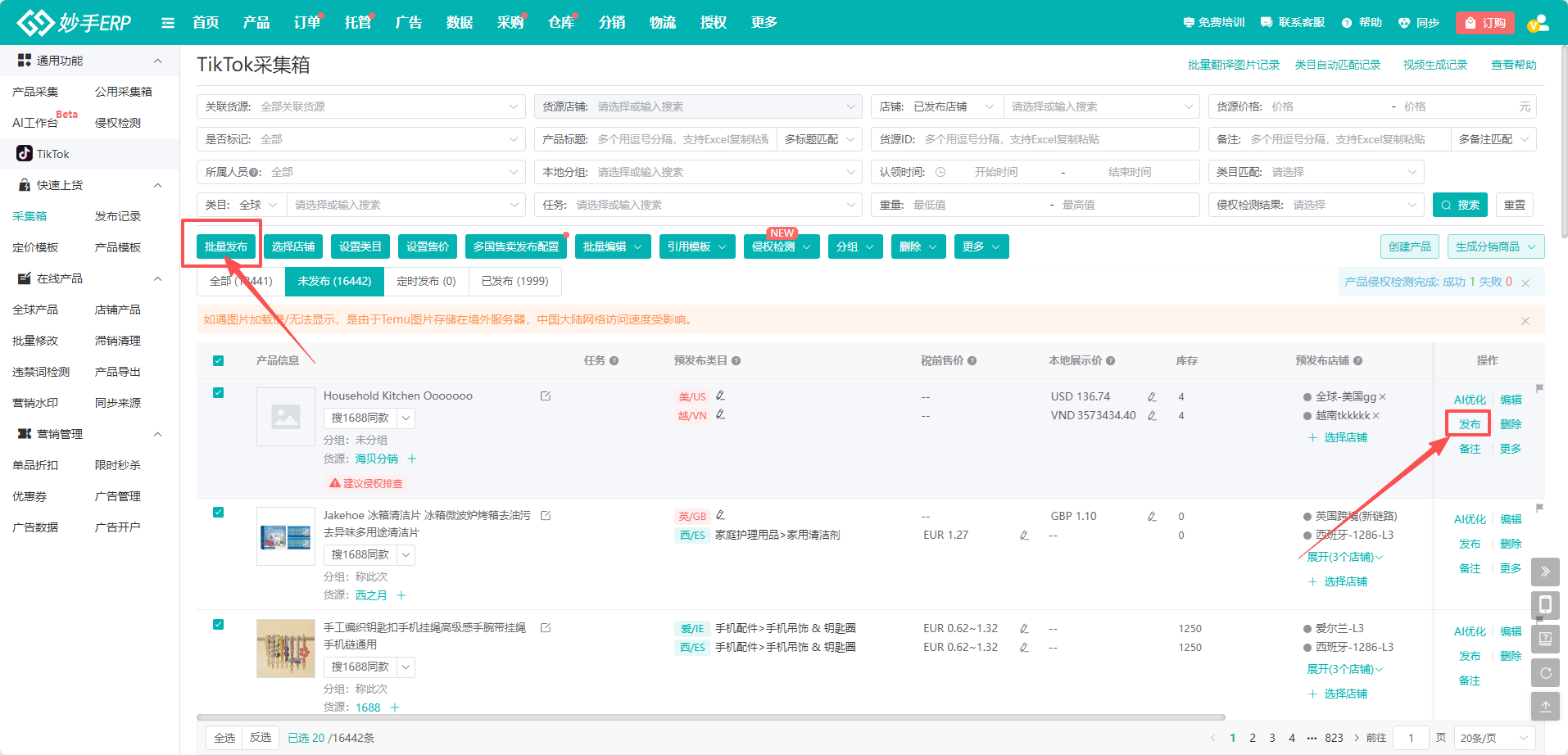 2、发布产品至各站点店铺