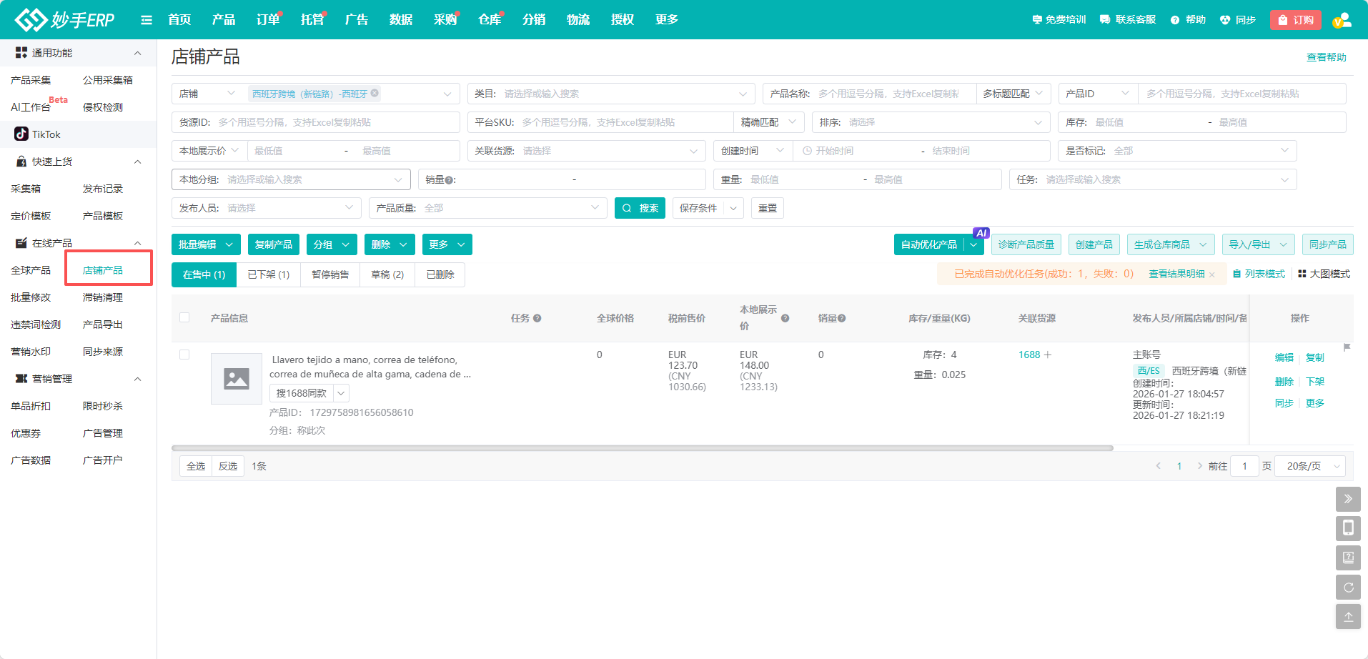 (4)发布成功后,可在店铺产品找到在线产品