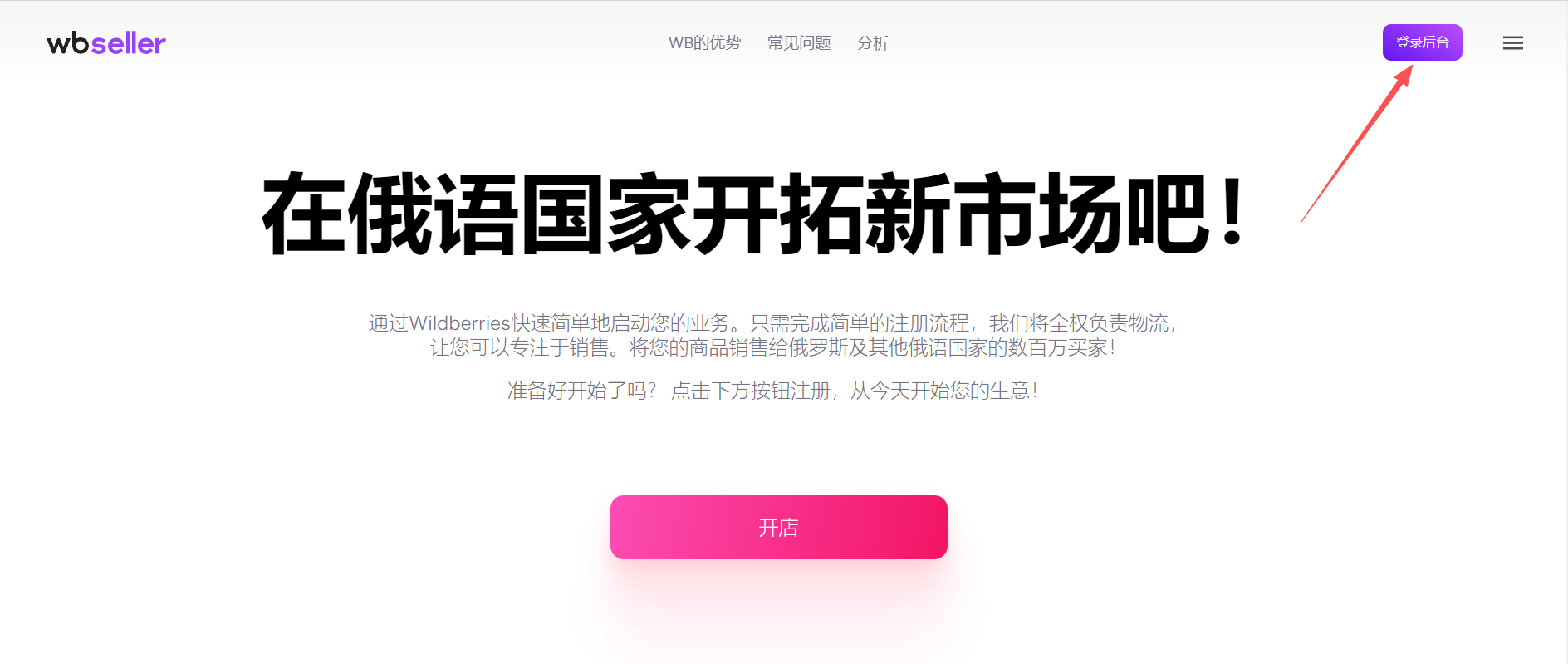 1、进入Wildberries卖家中心(https://seller.wildberries.ru/),并登录账号