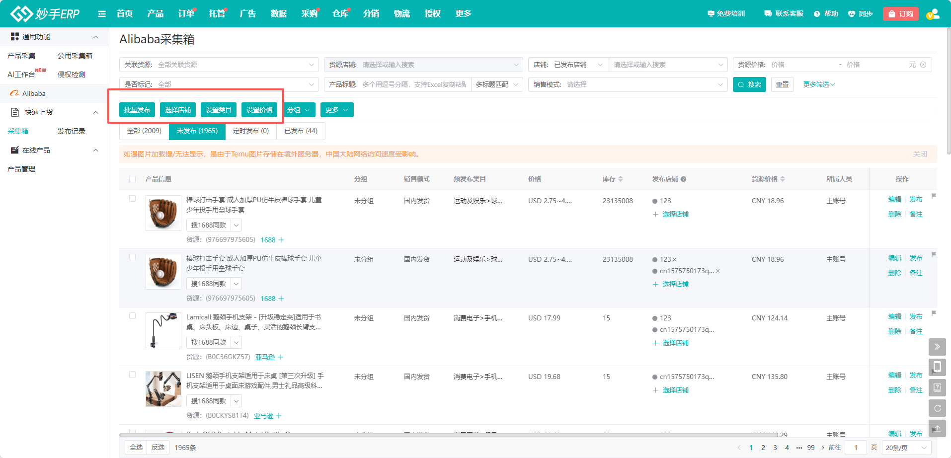 1、本篇教程主要讲解:Alibaba店铺卖家如何通过妙手ERP上传产品?包括如何采集产品、如何批量编辑、批量设置价格、批量选择类目等,以及如何批量发布产品至店铺,顺利帮助卖家完成产品刊登。