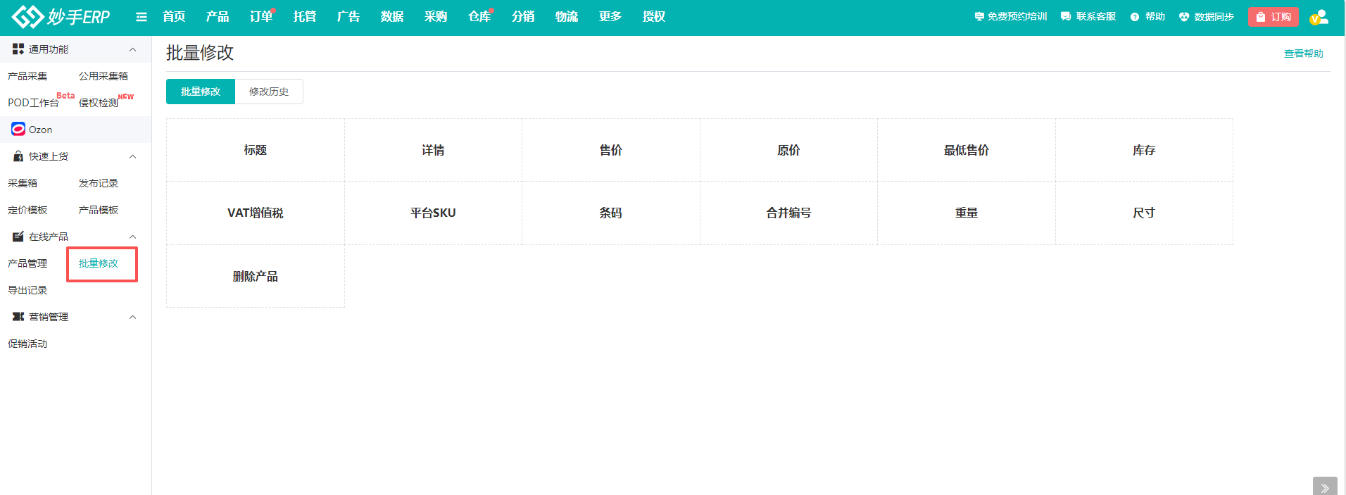 (5)也支持进入批量修改功能中,设置修改信息,针对已发布的产品进行修改