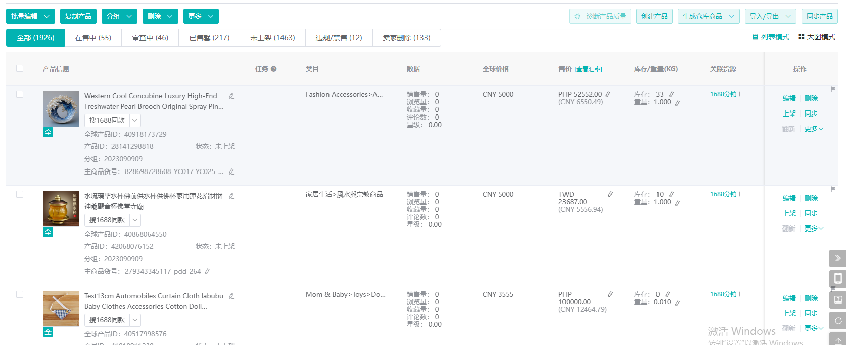 支持编辑在线商品并同步到店铺后台,支持一键批量操作上下架;