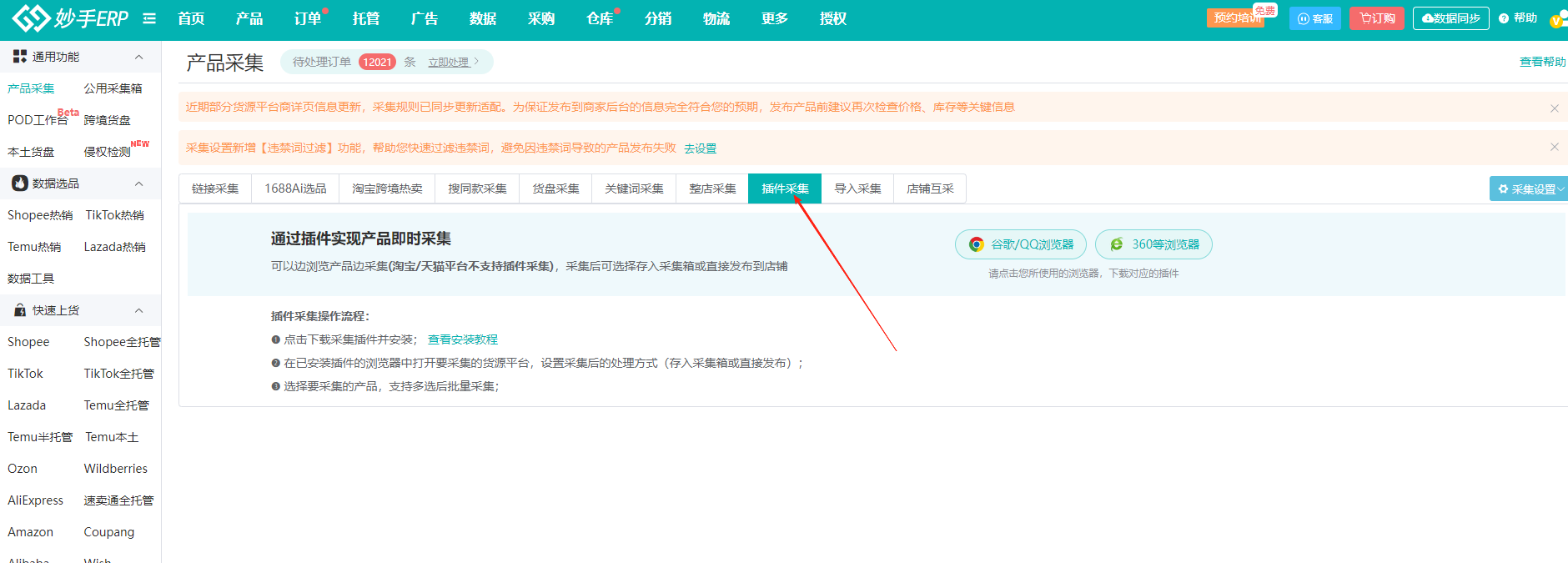 (1)使用插件之前,需要先安装妙手ERP最新版插件,可点击查看:妙手插件下载及安装教程(图文版)