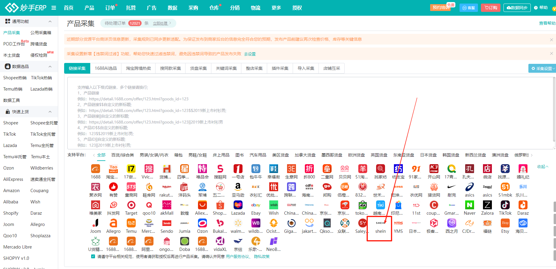 7、每个平台需要编辑的产品信息不同,可跳转到帮助中心,点击对应平台教程查看:帮助中心-产品刊登