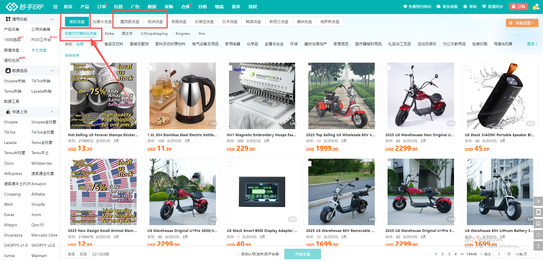 2、使用阿里巴巴国际站货盘功能,可直接采集阿里美区、墨西哥产品,并发布到店铺;