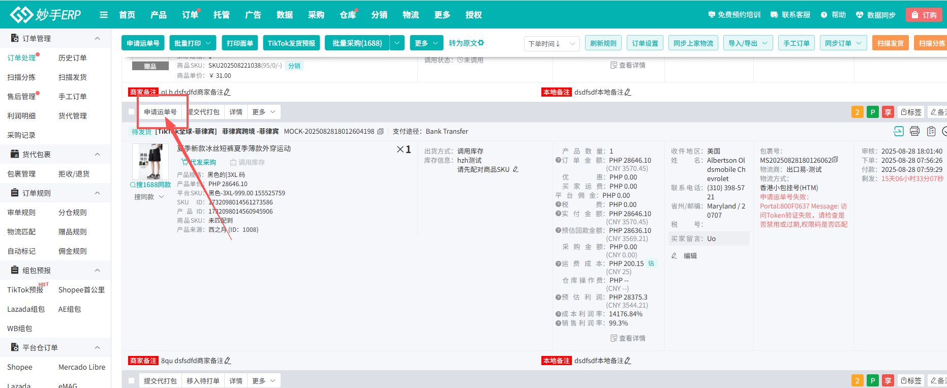 若发货时未设置物流映射,订单会发货失败并流转到【待打单发货】中,可以回到本教程第2步,设置物流商后,再手动点击发货。