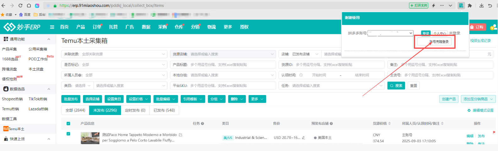 2、在妙手ERP插件中登录账号,可支持以下场景
