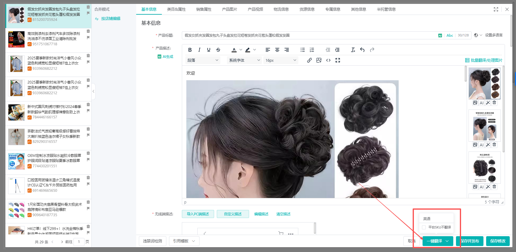 (6)点击右下方【翻译为英文】,可对产品信息进行翻译