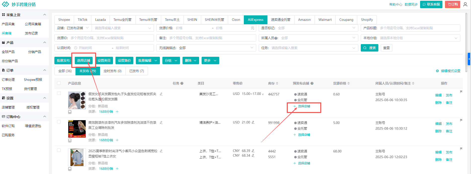 4、发布产品至各站点店铺