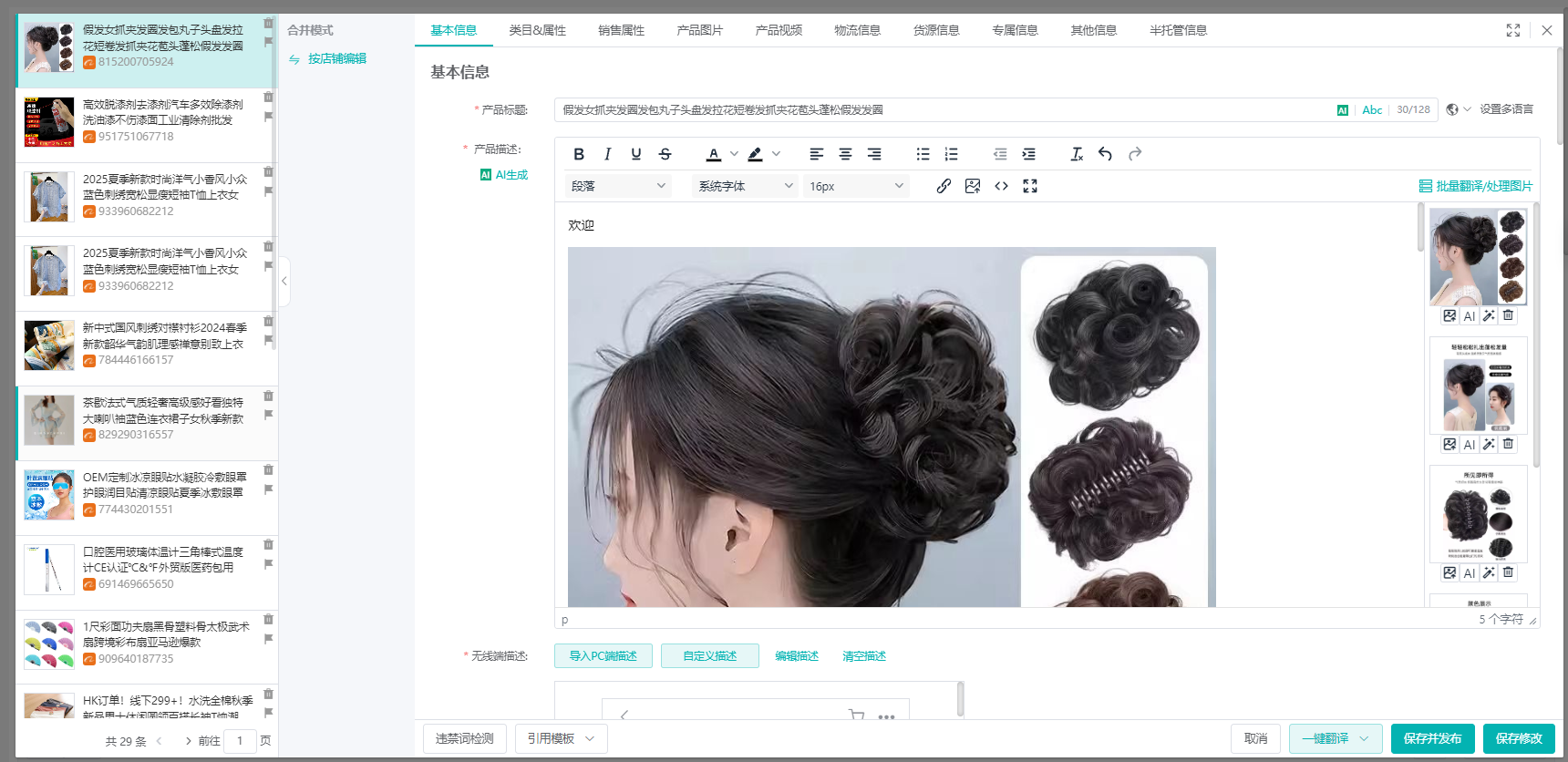 选择【保存修改】后,会创建产品,并保存到采集箱界面中,后续还可以二次修改再做发布