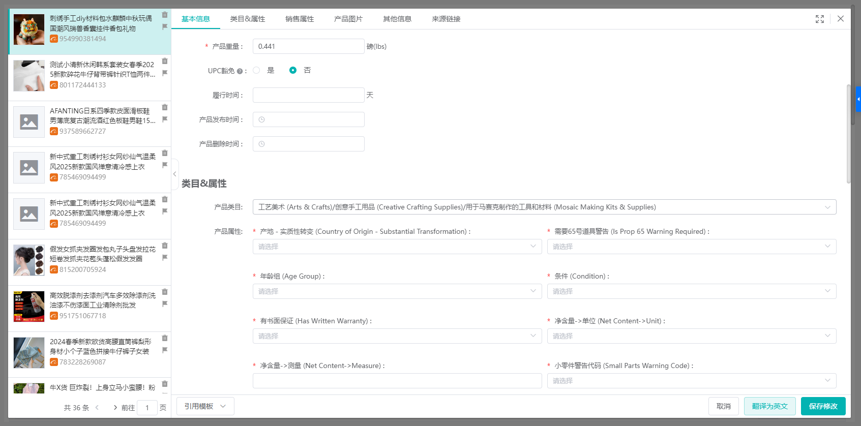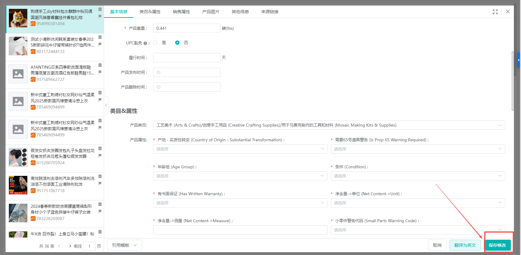 (1)点击保存修改,再进入到采集箱内,操作批量发布、单产品发布