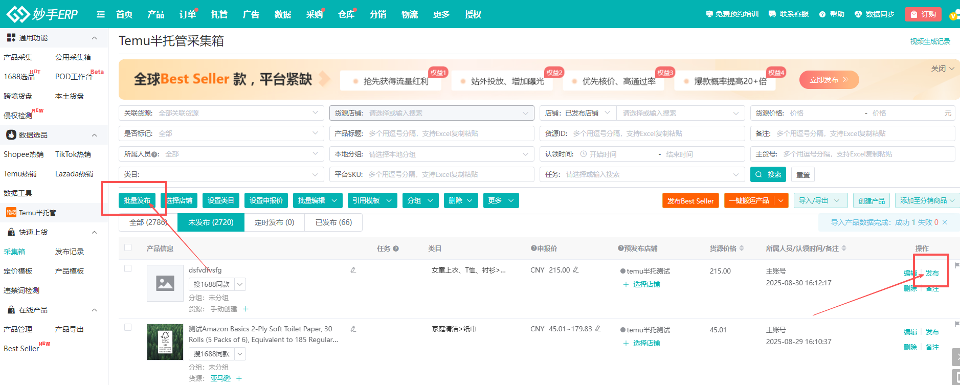 除了批量导入,还支持采集产品发布,具体操作流程可查看:Temu半托管-发布产品教程